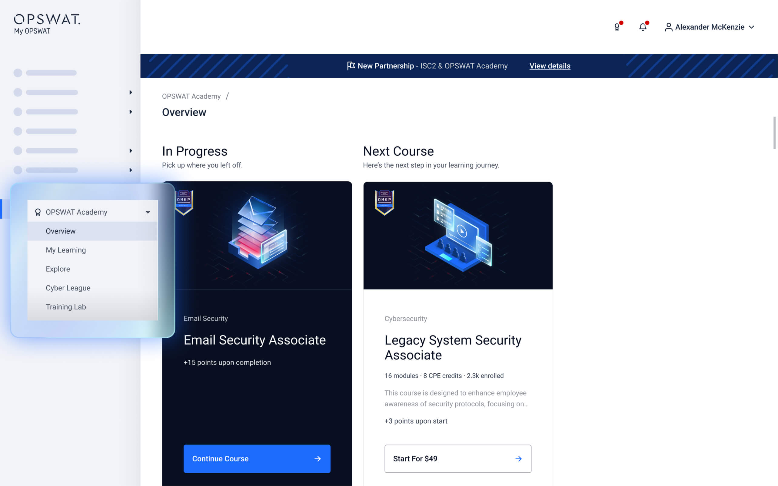 L'ultimo aggiornamento delOPSWAT My OPSWAT introduce una nuovissima esperienza OPSWAT , caratterizzata da un'interfaccia fresca e dinamica progettata per rendere l'apprendimento più personalizzato, coinvolgente ed efficiente.