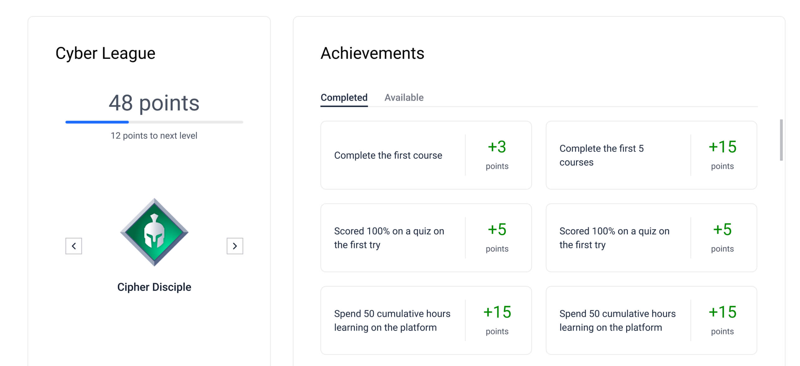 Tieni traccia del tuo livello, controlla i tuoi progressi verso il livello successivo e visualizza facilmente sia i risultati ottenuti che quelli disponibili nella sezione Cyber League aggiornata. Una competizione amichevole e obiettivi chiari ti spingono ad andare avanti.