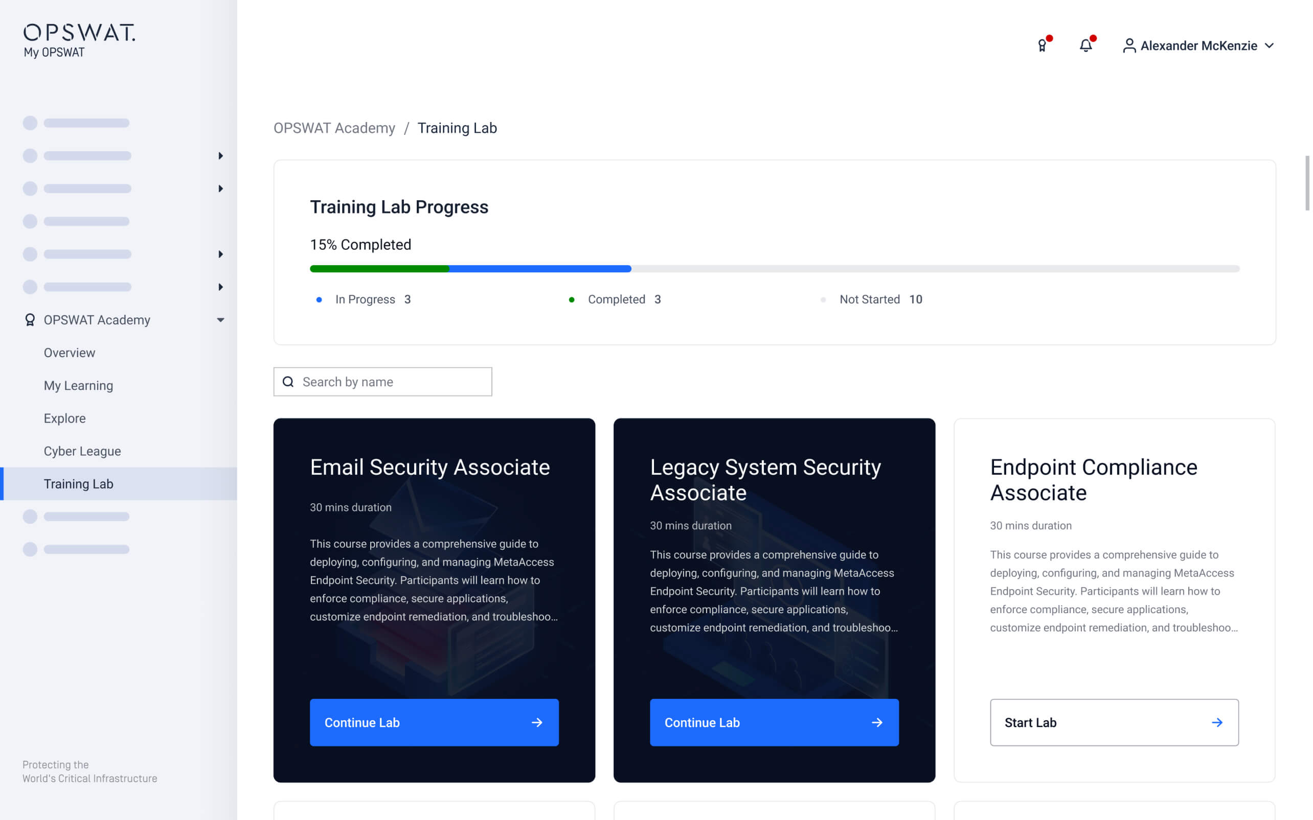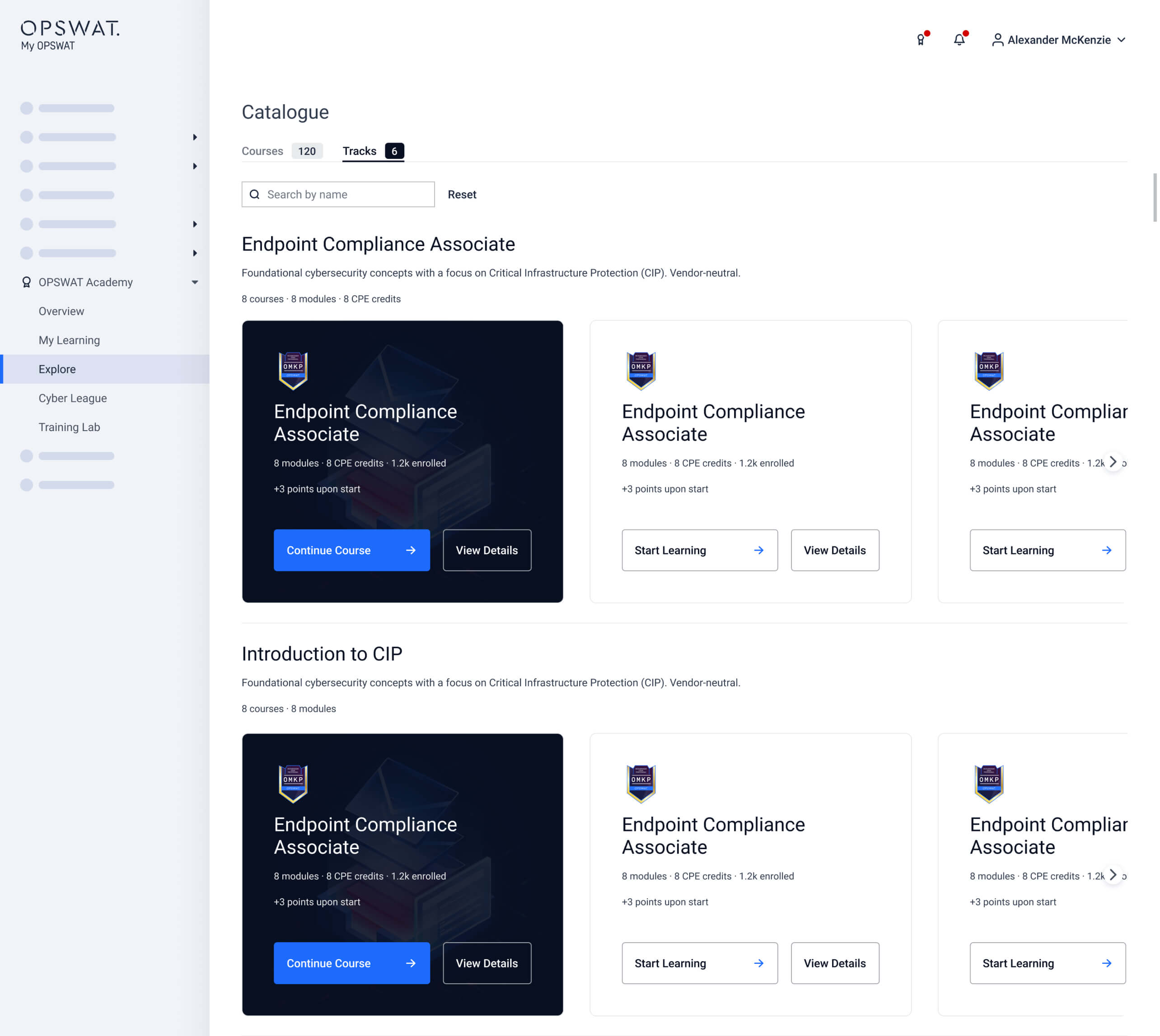 Ora vedrai cinque sottopagine curate OPSWAT che ti guideranno dal primo passo alla tua prossima certificazione. La navigazione è più fluida, i progressi sono più gratificanti e ogni azione sembra avere uno scopo preciso.