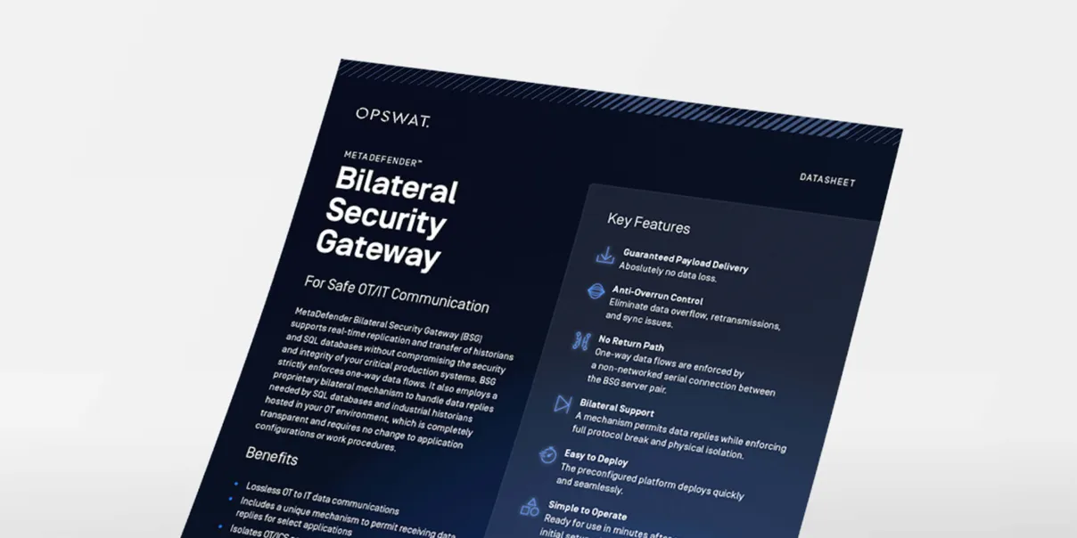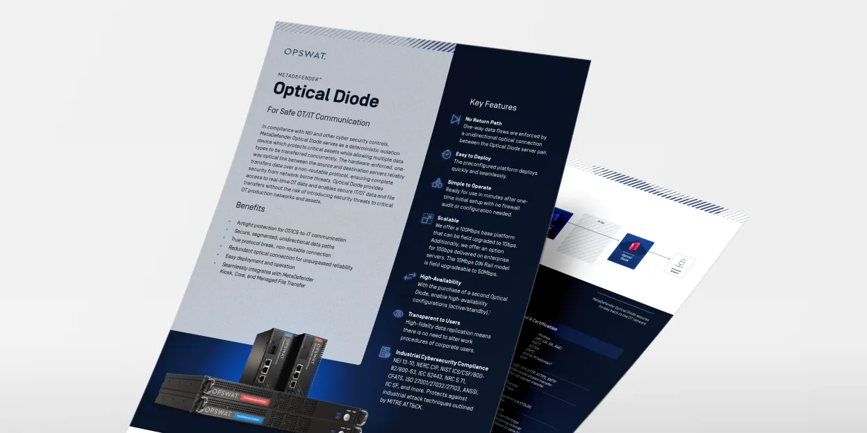 OPSWAT MetaDefender NetWall fornisce l'accesso ai dati OT in tempo reale e consente il trasferimento sicuro dei dati tra reti di diversa classificazione di sicurezza, difendendo al contempo gli ambienti critici dalle minacce provenienti dalla rete.
