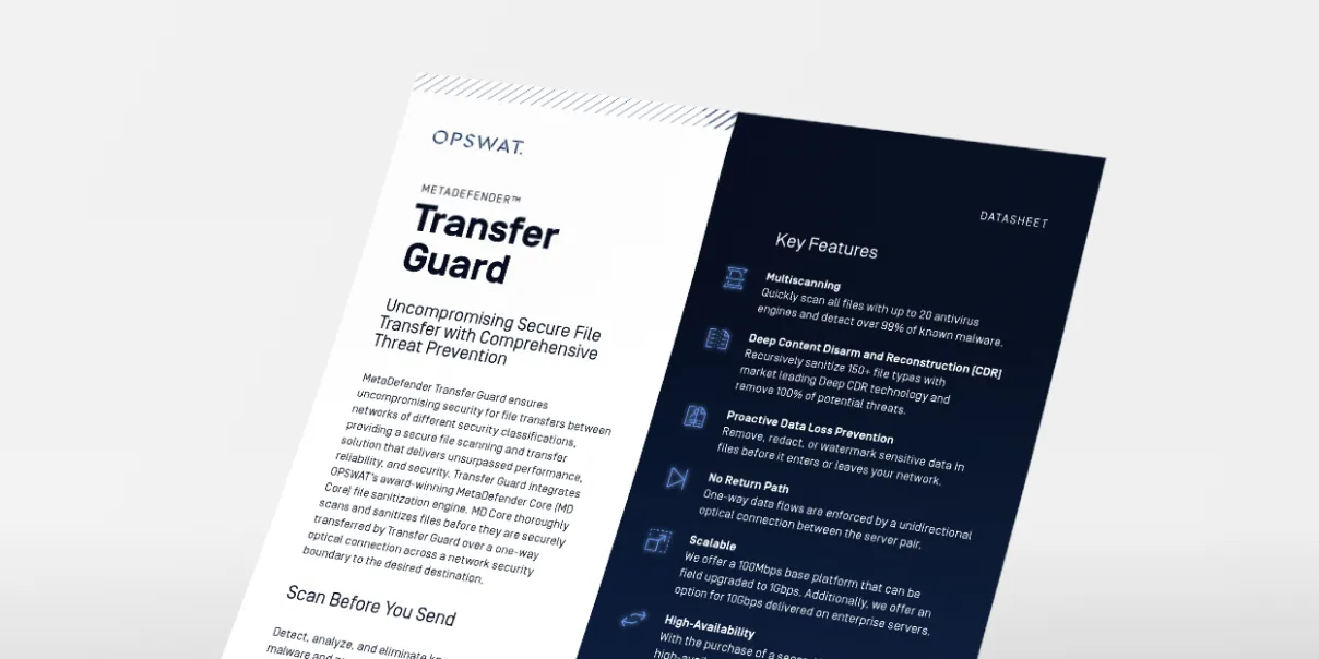MetaDefender Transfer Guard garantisce una sicurezza senza compromessi per i trasferimenti di file tra reti di diversa classificazione di sicurezza, fornendo una soluzione di scansione e trasferimento di file sicura che offre prestazioni, affidabilità e sicurezza insuperabili.